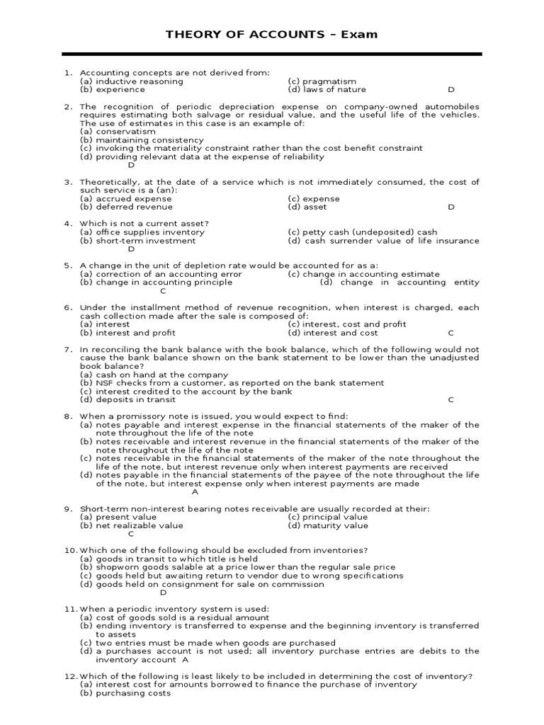 Theory Of Accounts Exam1 Dividend Depreciation