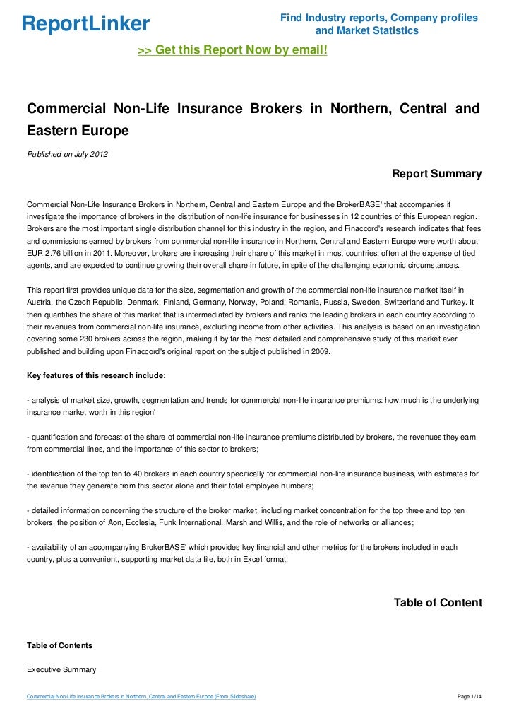 Commercial Non Life Insurance Brokers In Northern Central And Easter