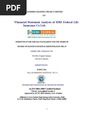 Financial Statement Analysis Of Idbi Federal Life Insurance Co Ltd